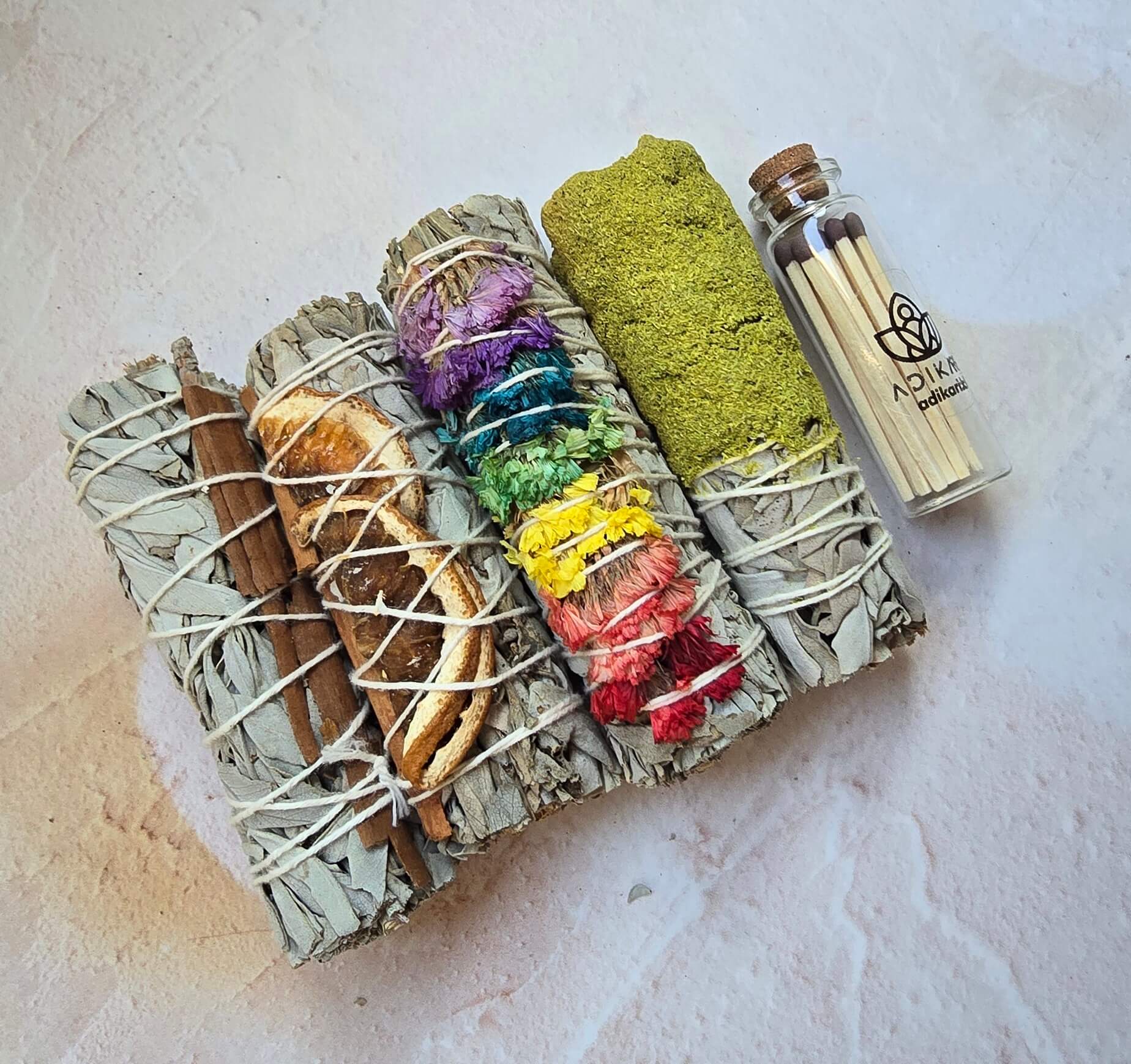 Modo de uso: enciende el atado y deja que el humo envuelva tu espacio, tu cuerpo o tus objetos, enfocando tu intención en equilibrar y armonizar tu energía.