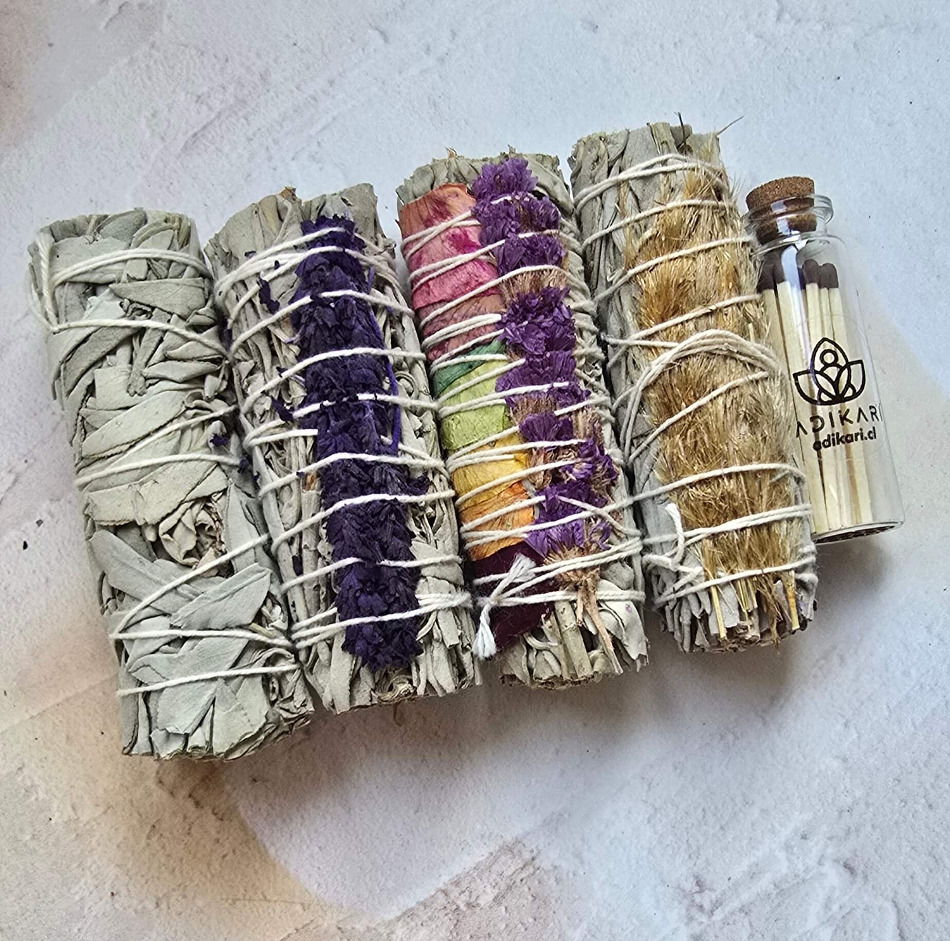 Modo de uso: enciende el atado y deja que el humo envuelva tu espacio, tu cuerpo o tus objetos, enfocando tu intención en equilibrar y armonizar tu energía.
